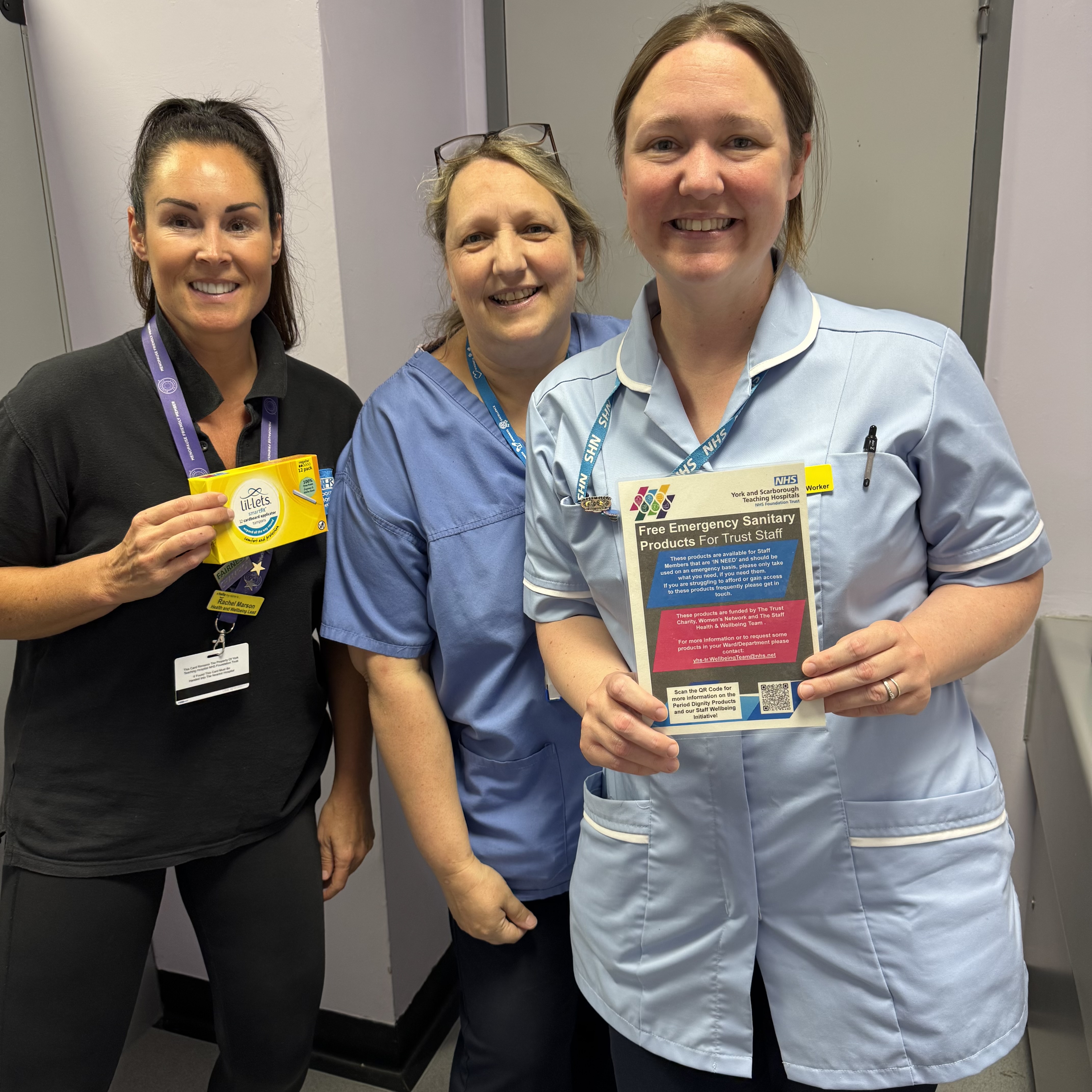 Period dignity products are available for staff at Bridlington, Selby, York, Scarborough, Malton, The Old Chapel at York and White Cross Court.